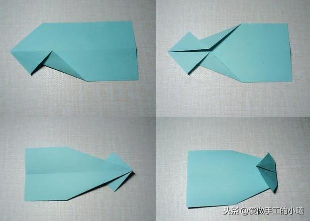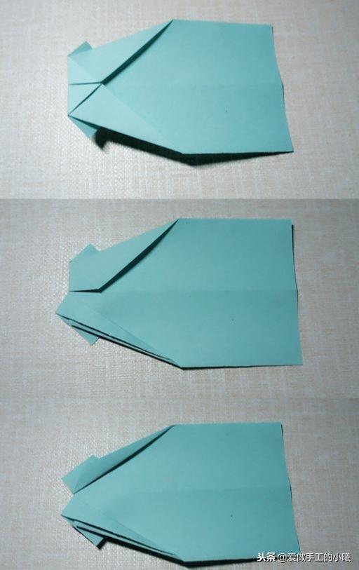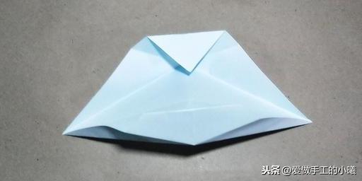 将下面的部分向上折(上面的图),底部三角形向上折,稍微用力一点压折,便于看到清晰折痕!