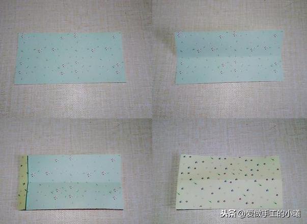 首先沿着中间对折,左边向里折一个小细条,然后翻到背面来。