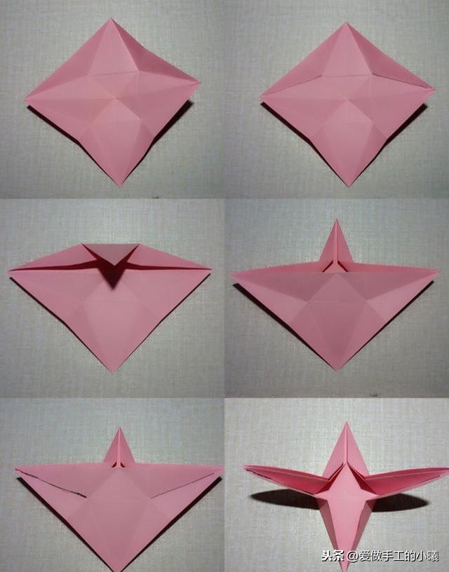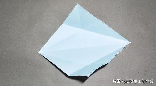 首先折一个“米”字,然后沿着折痕向里合,其中一个角向上翻。