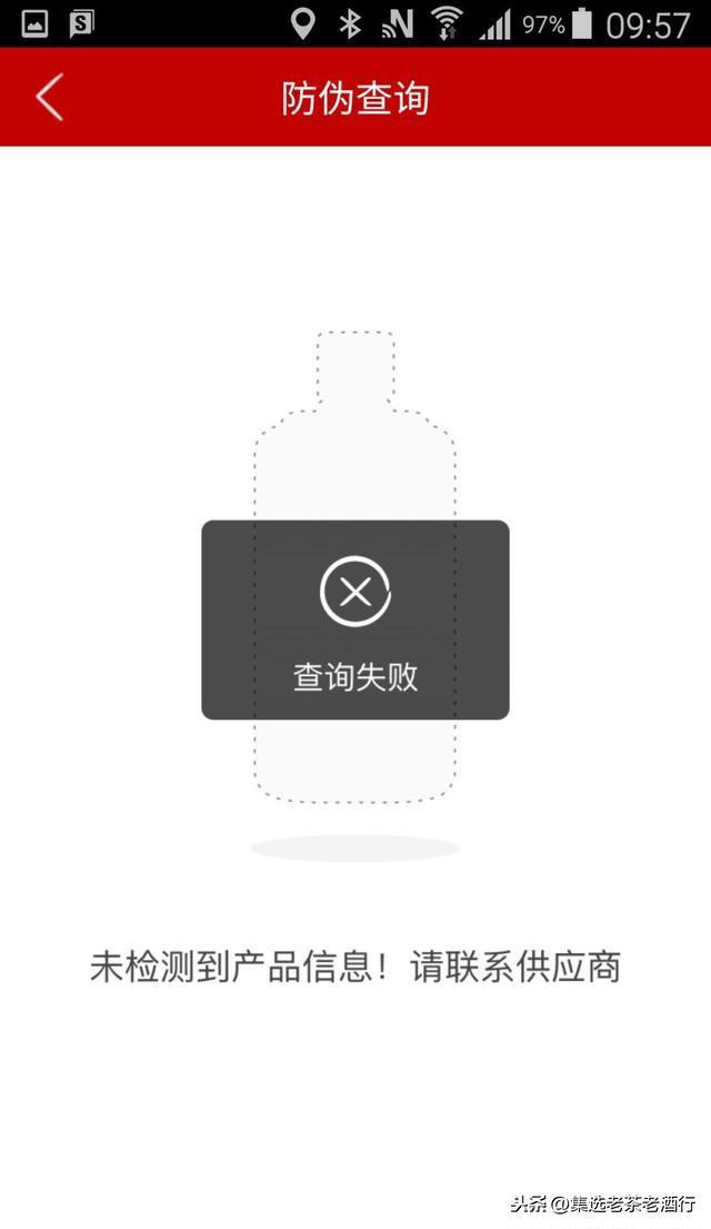 1.4、如果待测茅台酒查询失败,则显示如下图所示的信息: