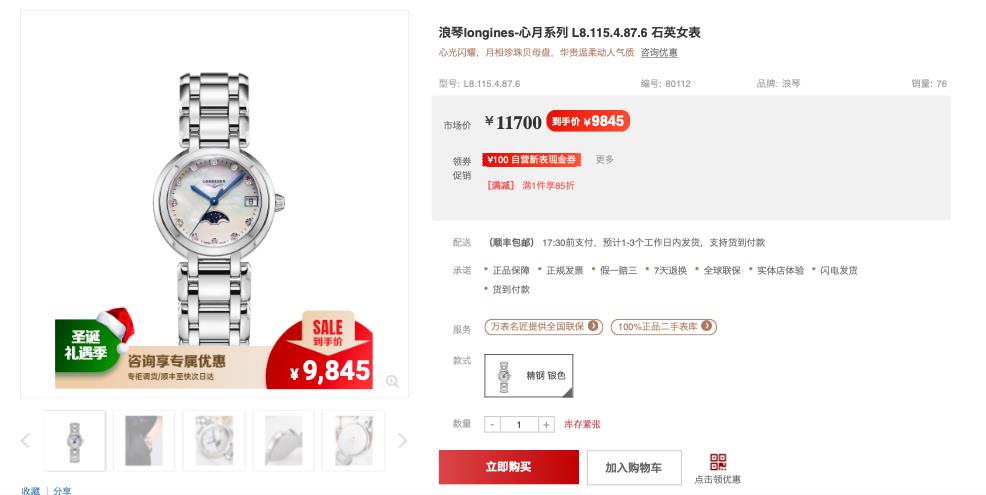 !!正巧赶上万表商城举办活动,这款浪琴手表原价11700元,现在折扣价只要9845元!!还享受2年名匠保修服务,超级实惠了有没有。