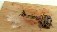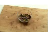 2.准备好一个碗,倒入切好的黄鳝,淋入适量料酒,搅拌均匀,腌制十分钟后,洗净。