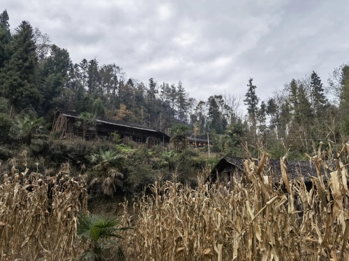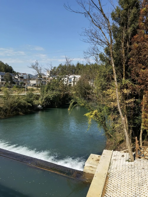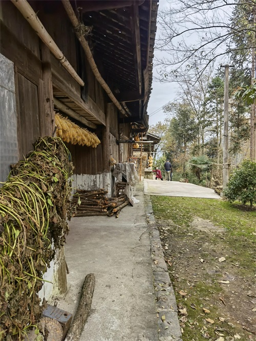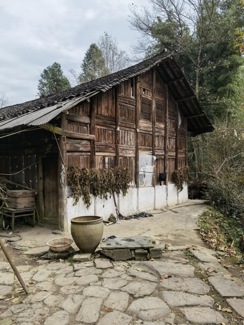 到关东村真的是谋划已久,T书记邀约了两次,一直因故没有成行。关东村位于福宝山脚下,腾龙洞、龙船水乡景区都在它的北面30公里处,马上要修建的沿江高铁南线利川站就在10公里远的旗杆村,交通极为便利。康家大院位于村委会对面,马前河畔,20多栋土家木房子掩映在树林中,如一幅水墨画,在蓝天下安静地展现。