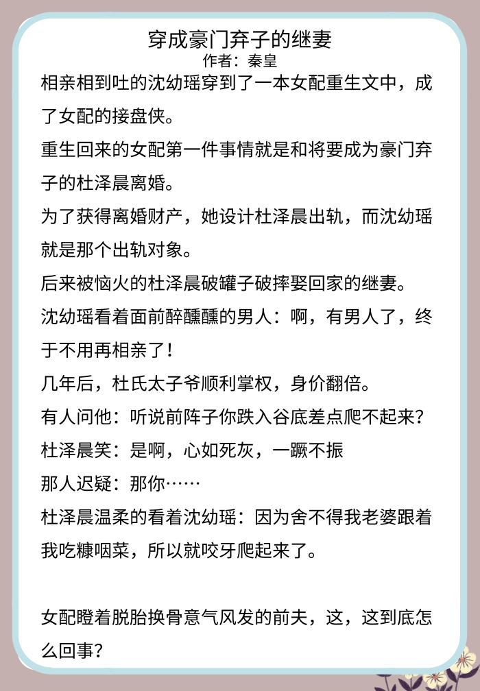 推文:三本穿书文,穿成豪门弃子的继妻~嫁给龙傲天他爸~