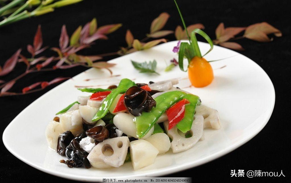 菜名很有诗情画意,也很贴近原材料,荷塘月色中的"荷"指荷兰豆,莲藕,"塘"指的是莲藕
