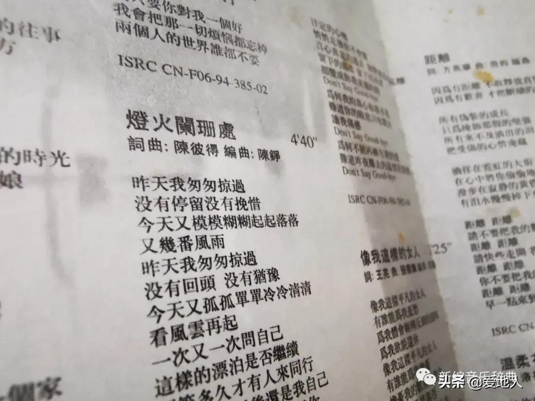 《灯火阑珊》也是我觉得《只爱我一个》专辑里,除《梦里水乡》最好听的一首歌曲,那个用收来处理的副歌很特别,也很好听。