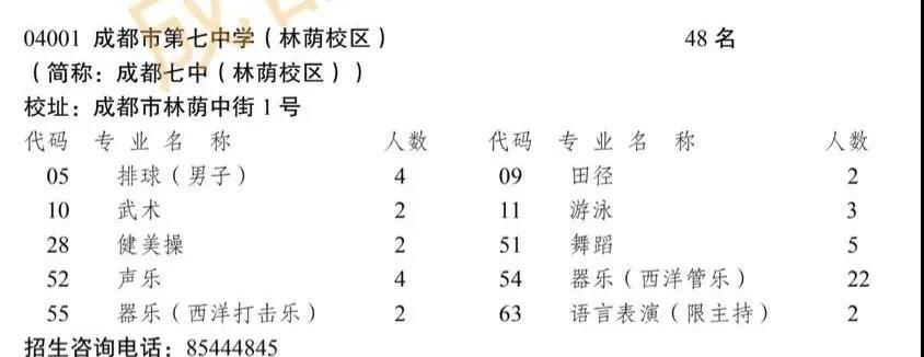 2020年,七林、七高两校区合计特长生招生83人。