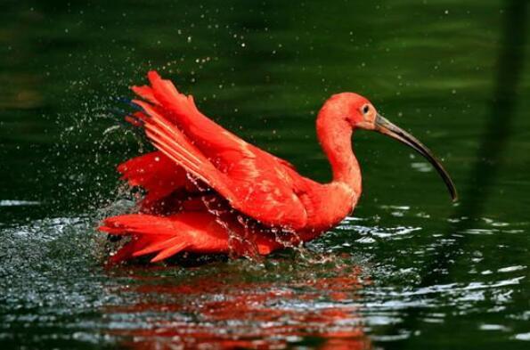 美洲红鹮全身都是鲜红色,它们栖息在沼泽中,就如同一团团火焰,十分引人注目,它们是世界上颜色最红的鸟类,具有极高的观赏价值。