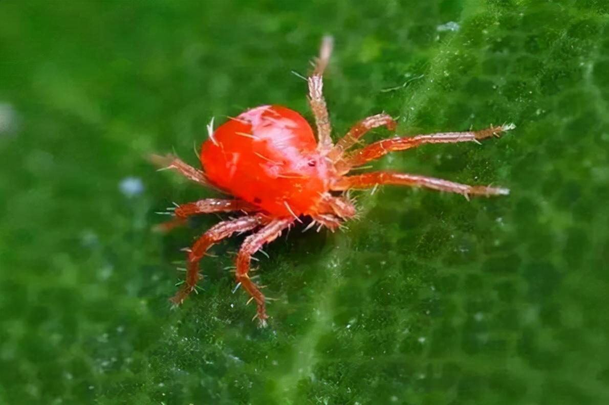 红蜘蛛,又名棉红蜘蛛,体色一般为深红色,是一种植物害虫,主要危害茄科、葫芦科等多种蔬菜作物,繁殖能力极强,喜欢高温的天气。