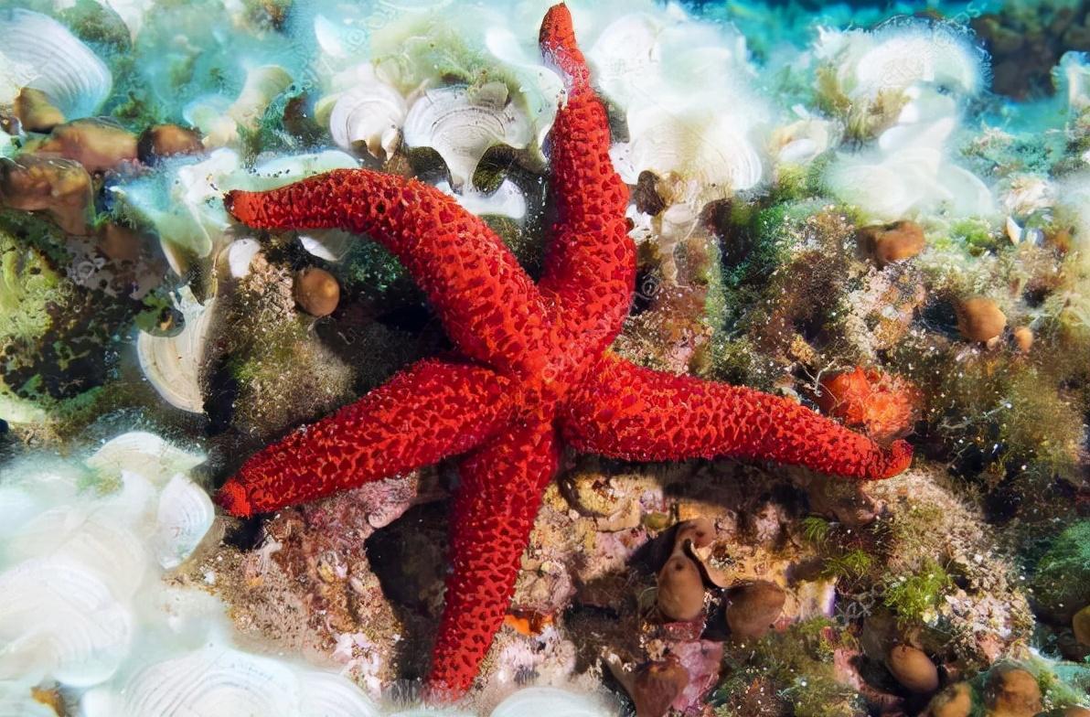 红海星是一种非常漂亮的海洋生物,它们的体色多为鲜红色,很是惹人注目,主要以藻类以及各种微生物为食。