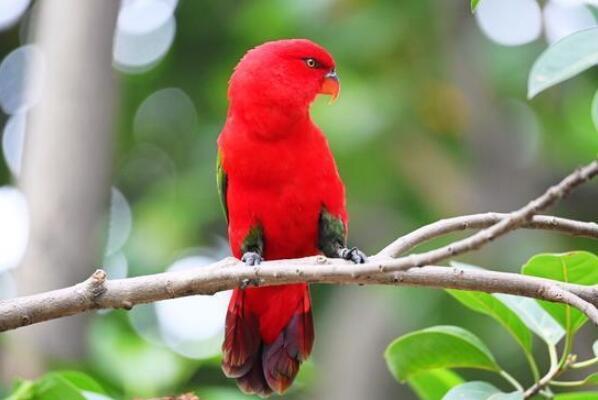 红色吸蜜鹦鹉的身体几乎全部是红色,飞羽带有一些,黑色和蓝色鸟喙比一般鹦鹉的长,主要以花粉和花蜜为食。