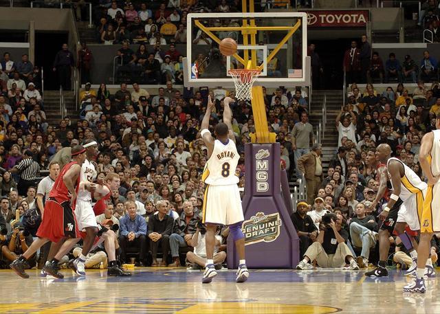 在上半场结束时,科比就已经得到了26分。不过湖人却落后于猛龙两位数的分差,湖人的主场球迷用一次次的嘘声刺激着科比,刺激着这位联盟最伟大的得分手之一,终于他做出了疯狂的举动。