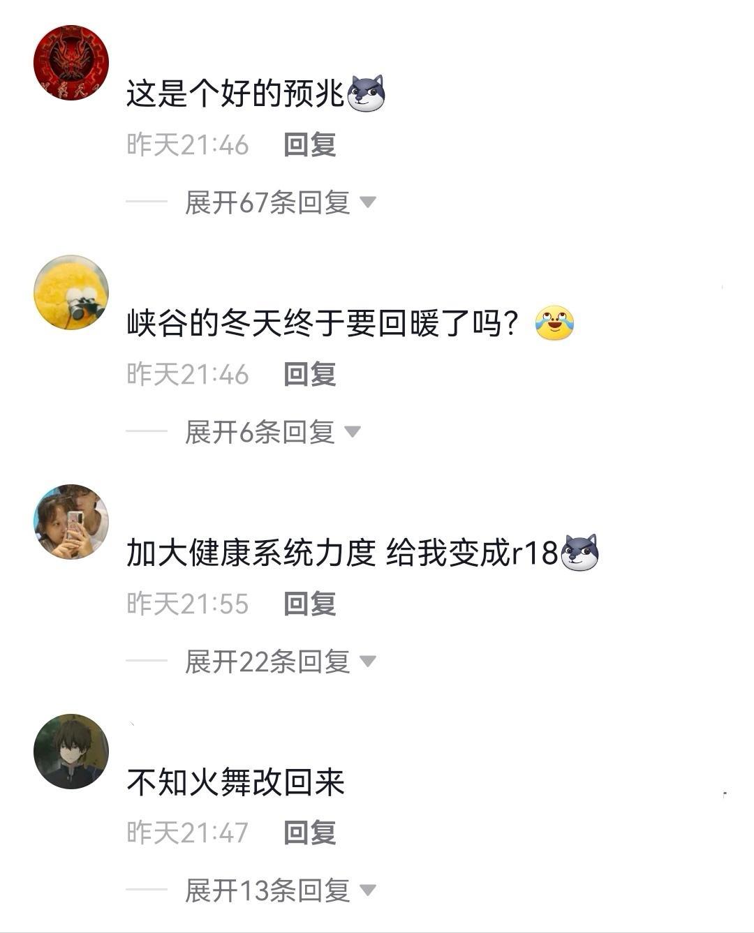 对于这一改动,网友们也是很激动,毕竟这么多年了,王者峡谷的冬天终于要回暖了。