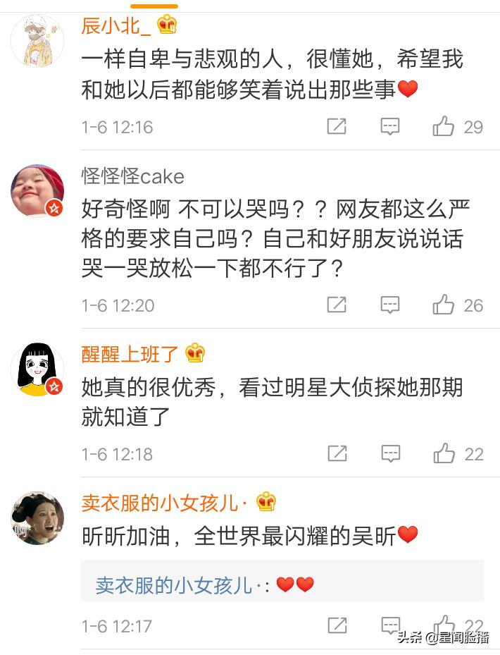 这样的一段话出来之后,网友也纷纷留言表示自己对于吴昕的支持,也希望吴昕能在之后的道路中越走越顺。也有网友表示吴昕真的是一个非常努力真实的人,在节目上面不争不抢。但是还有网友说到,自己在看吴昕参加闪亮新主播的时候,觉得吴昕说法语的时候非常有气质,非常有知性美,但是在快乐大本营上面觉得并不适合她,在快乐大本营上面没有发挥吴昕魅力的地方,所以真的觉得吴昕没有找到适合自己的位置。