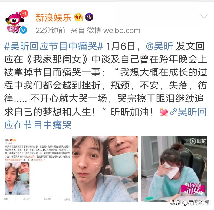 吴昕回应在节目中痛哭一事,曾因跨年晚会节目被拿掉而痛哭