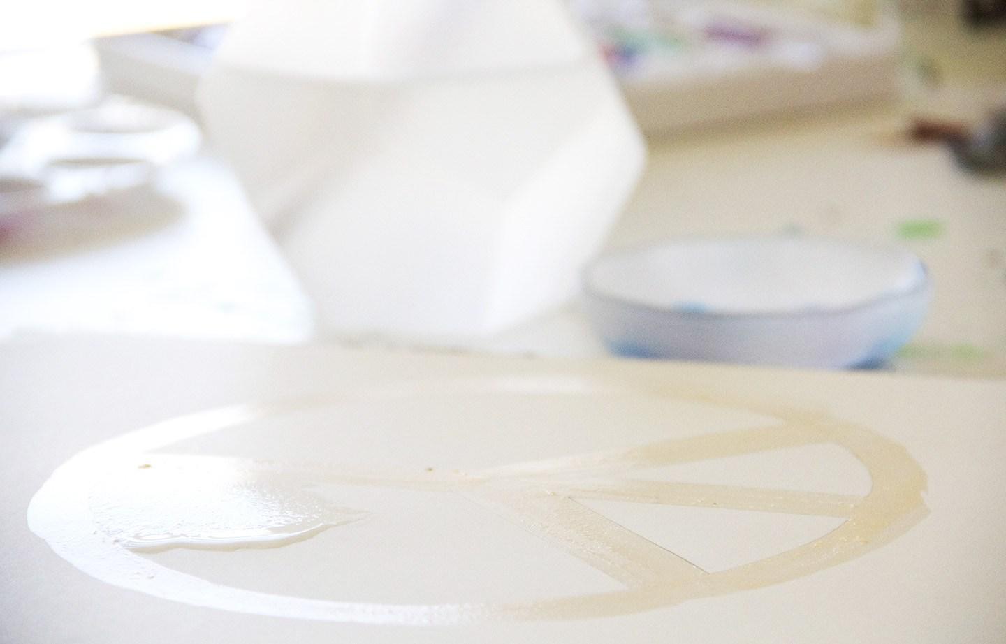 第二步:用留白胶把标志中间的空隙涂抹好,可使用尺子作为辅助工具。