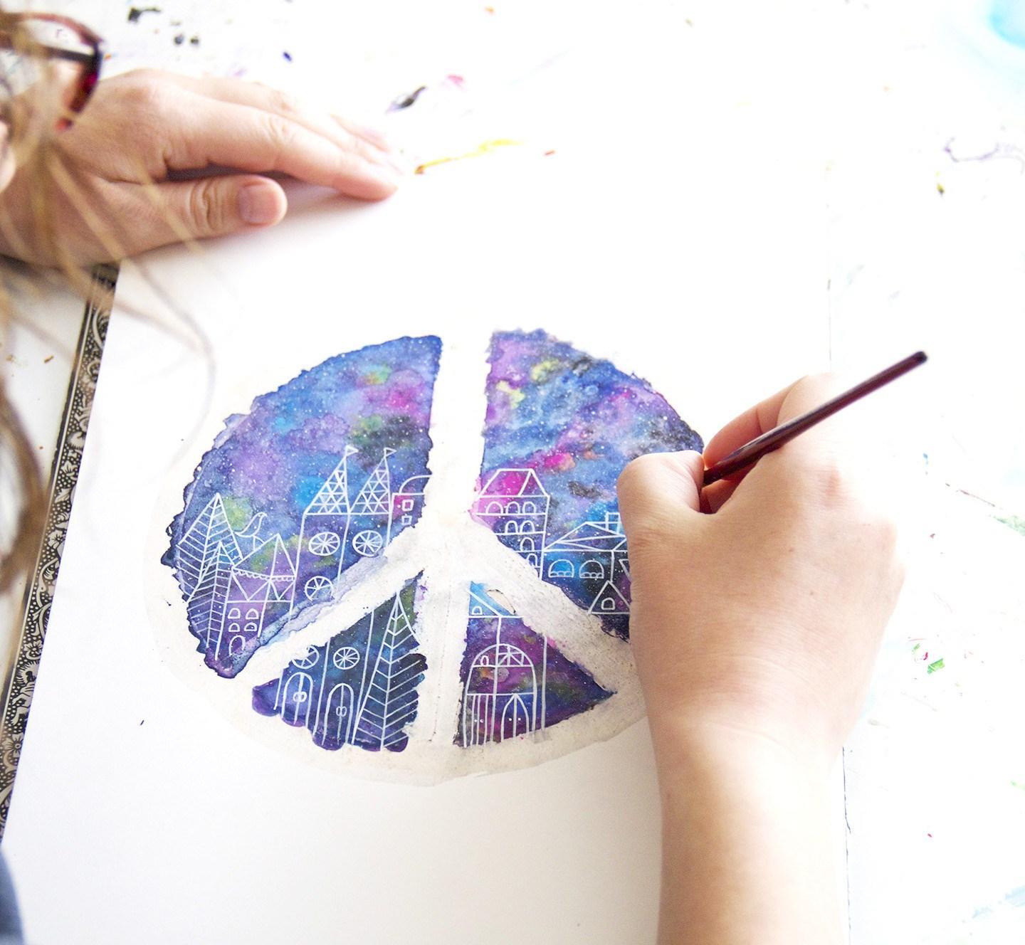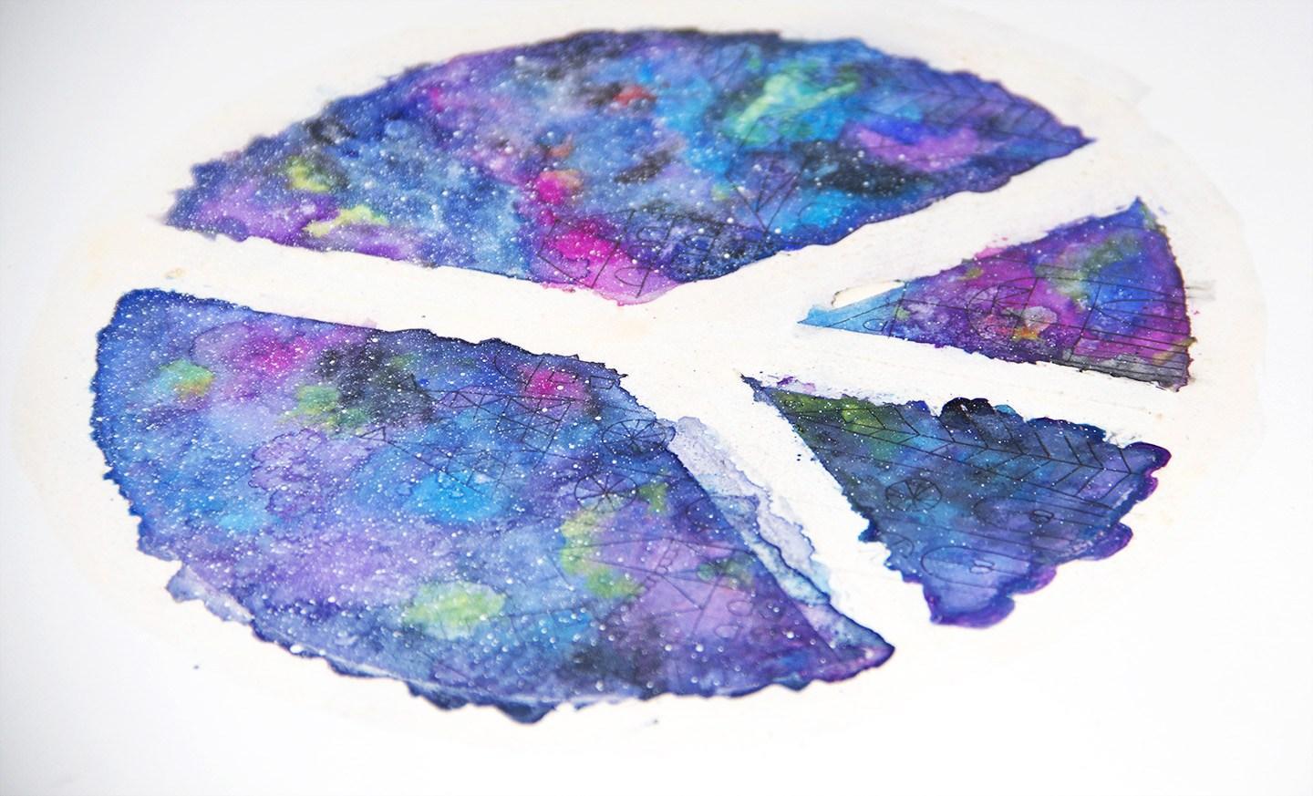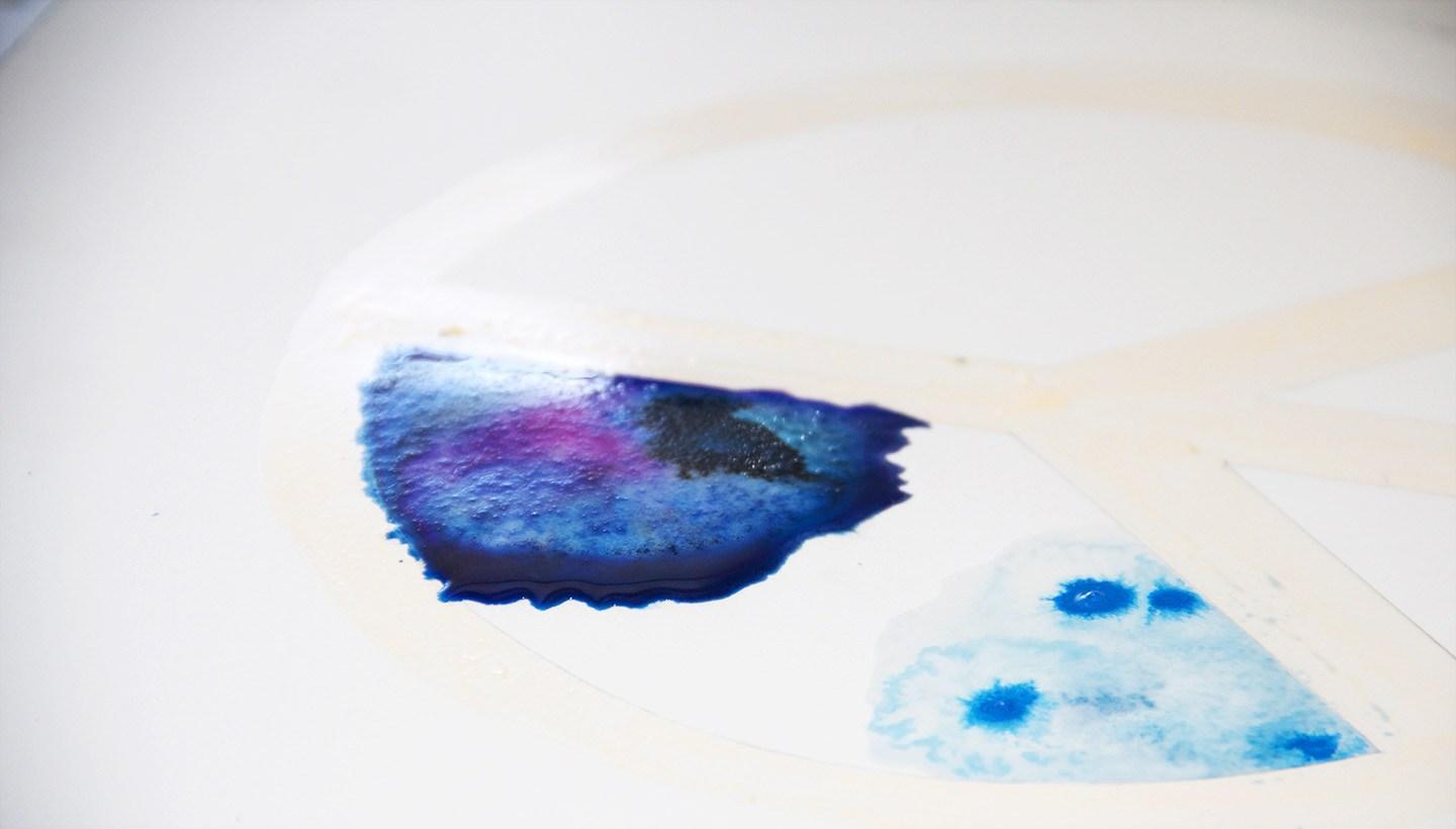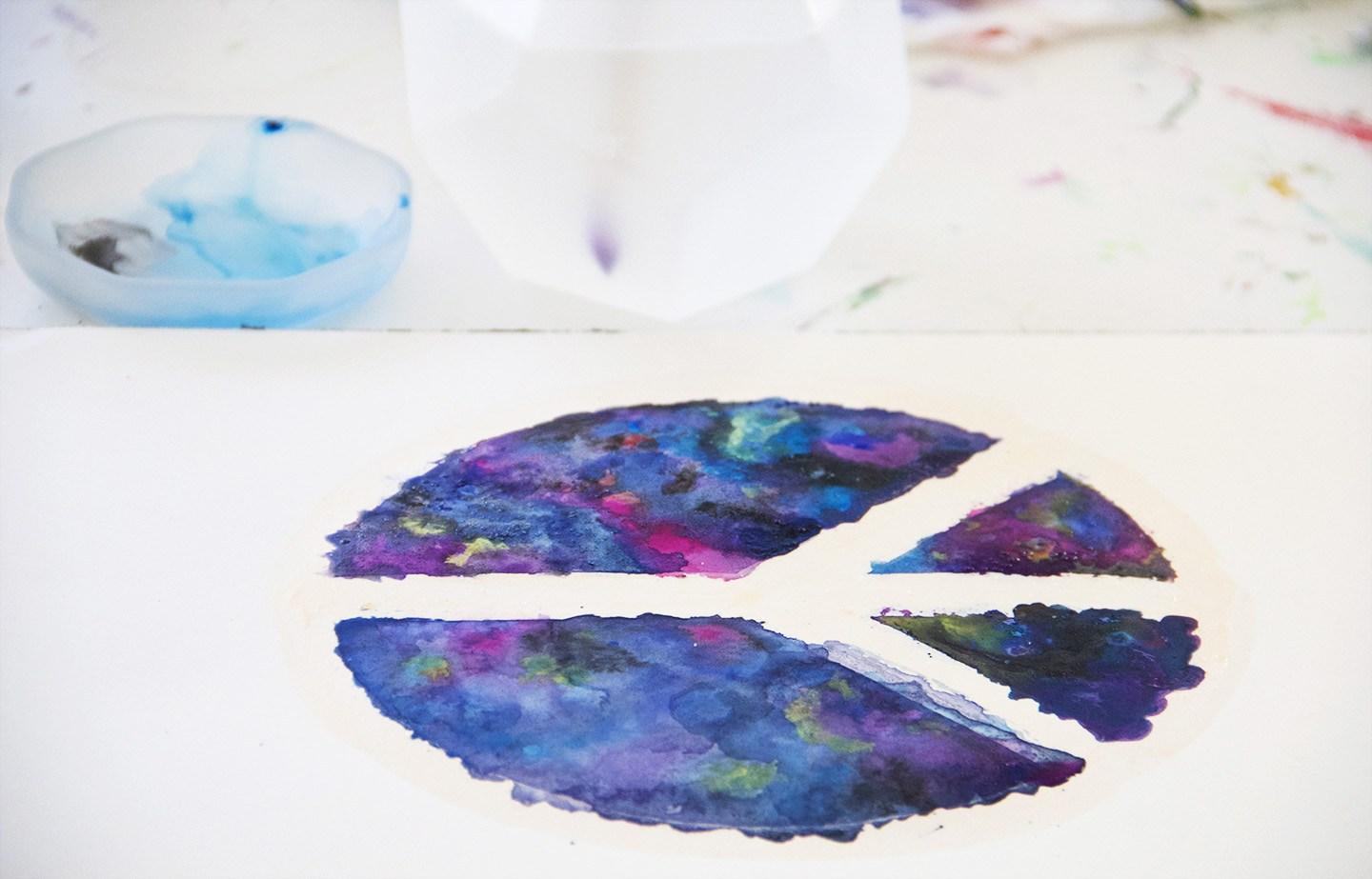 第六步:在绘制星空的效果时,你也可以使用沾上酒精的棉签添加不同的质地。使用沾满酒精的棉签轻柔涂抹绘制区域,然后你就可以坐等魔法生效了!