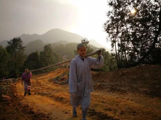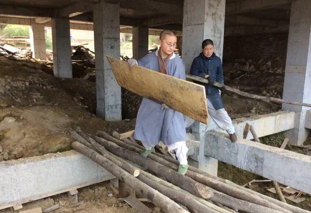 尼师们合力清理工地现场