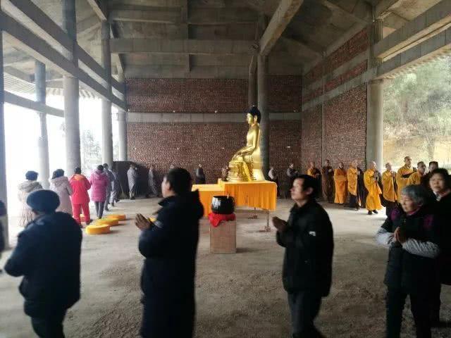 愿三圣殿早日圆满建成,大开佛门广度众生当时因为条件有限,只搭置了临时佛龛,一尊佛像和几个拜垫。僧俗二众在一起转佛、绕殿,虔诚念佛,法喜充满。佛号声声不息,召唤着每个人心中的善意。