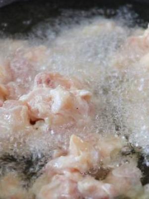 锅内倒油解析,将油烧热球至筷子放进去起密集小泡泡,放入鸡个部软骨大全身上炸制,鸡软骨是哪个部位的肉,用筷子快速划散。