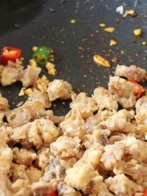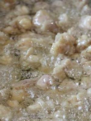 大火炸到鸡脆骨图片起壳儿位图,捞出鸡软骨,鸡膝软骨,继续炒图解加热。