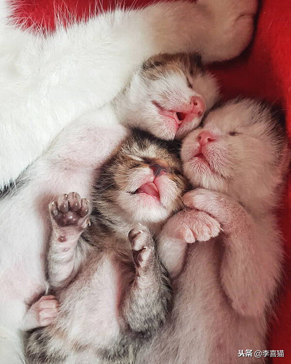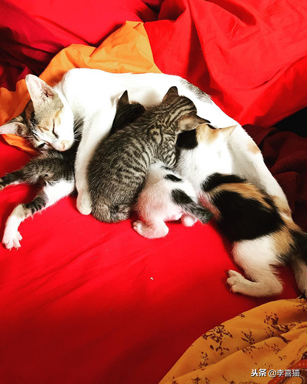 就像我家的花滚滚,生了四只身上带橘色的宝宝,她自身几乎所有的营养和摄取来的额外营养都分给了这四个小吃货,结果就是自己瘦了一大圈儿。这个是难免的,铲屎官要做的就是及时进行营养的供应和补充。