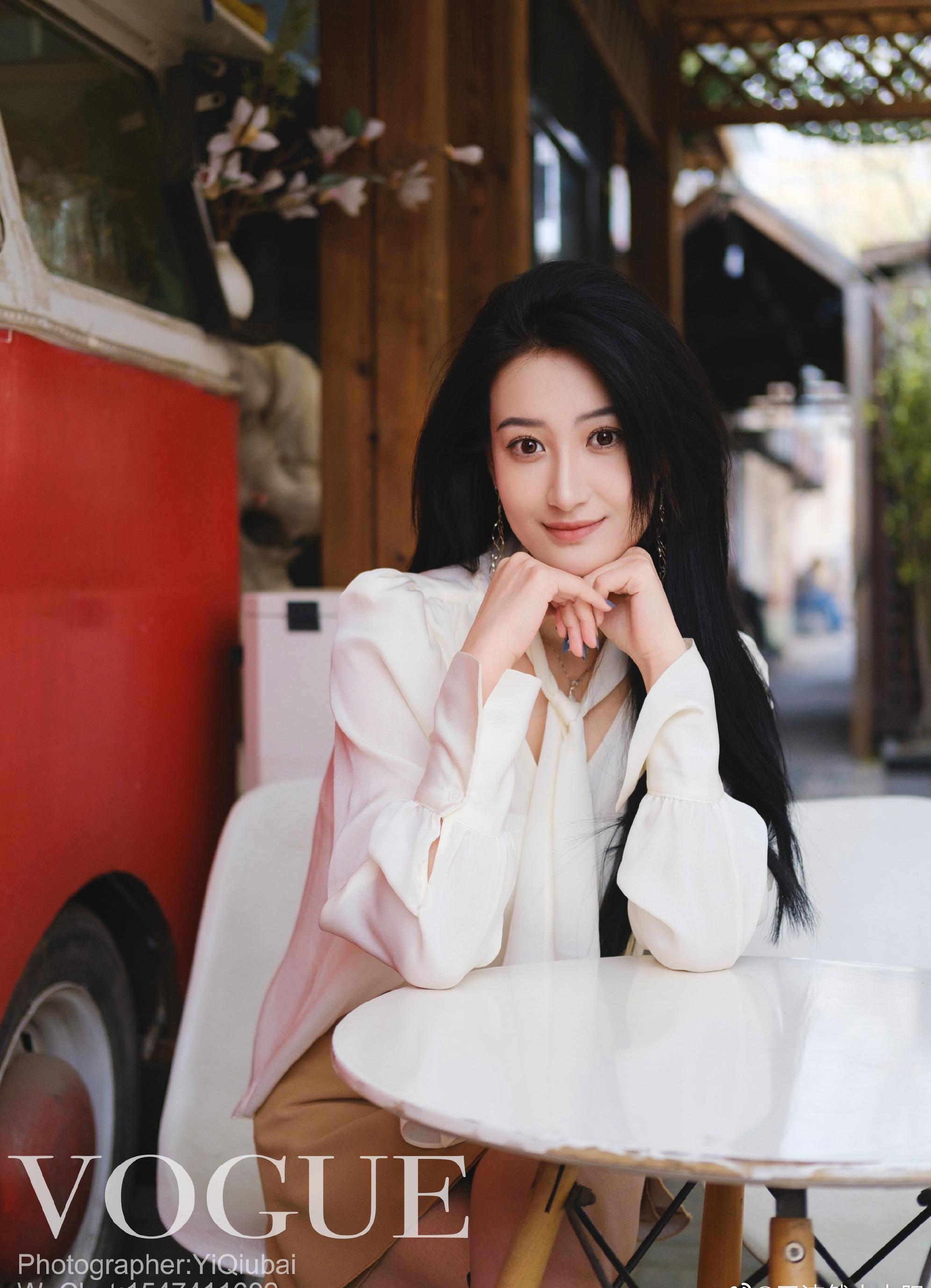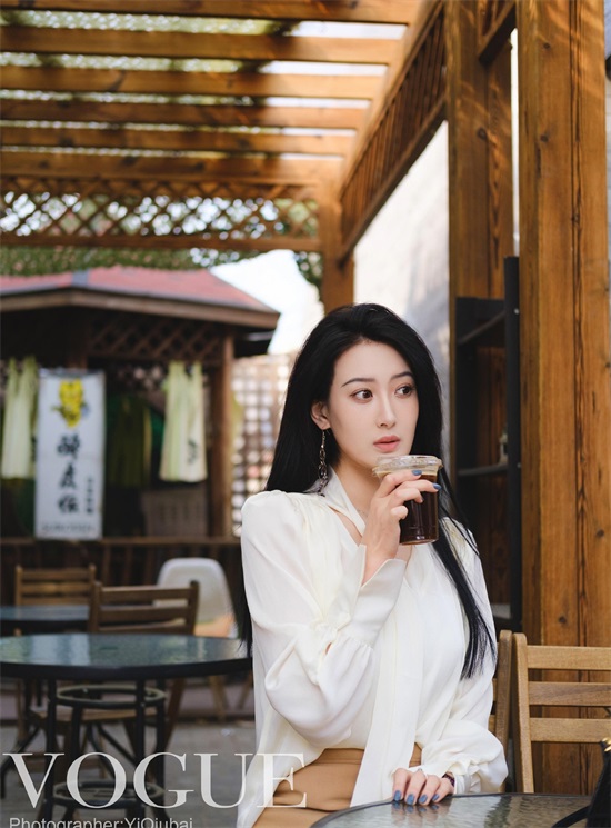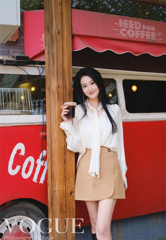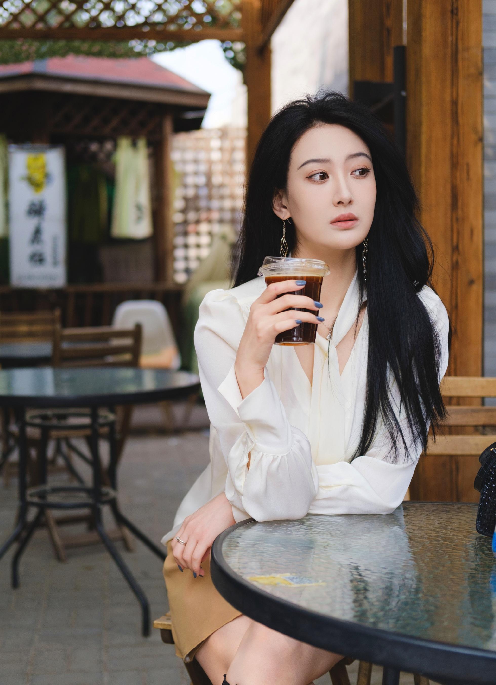 “小许晴”北影校花王沛然,穿着白衬衣黄短裙,潇洒享受咖啡