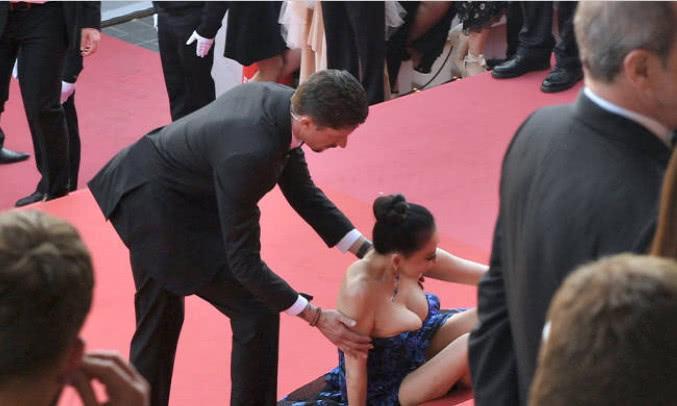 邢小红戛纳红毯摔倒春光乍泄,不以为耻反以为荣!