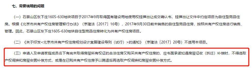石景山西山荟景嘉园申请公告中对拆迁的说明: