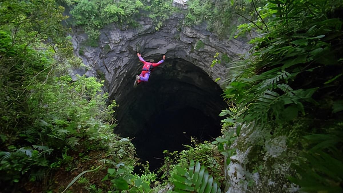 从空中跳入燕子洞天坑。在那漆黑的深渊中,勇者们如同蛰伏的龙,咆哮着振翅欲飞。他们体验到大地的气息,感受到了生命的蓬勃和力量的觉醒。。