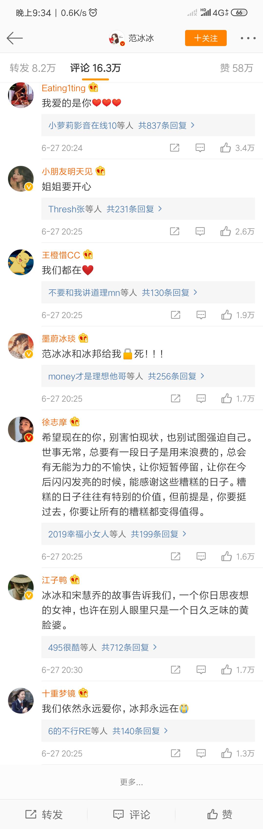 范冰冰的声明下面大部分都是友好的安慰祝福,而李晨那边画风就不一样了。