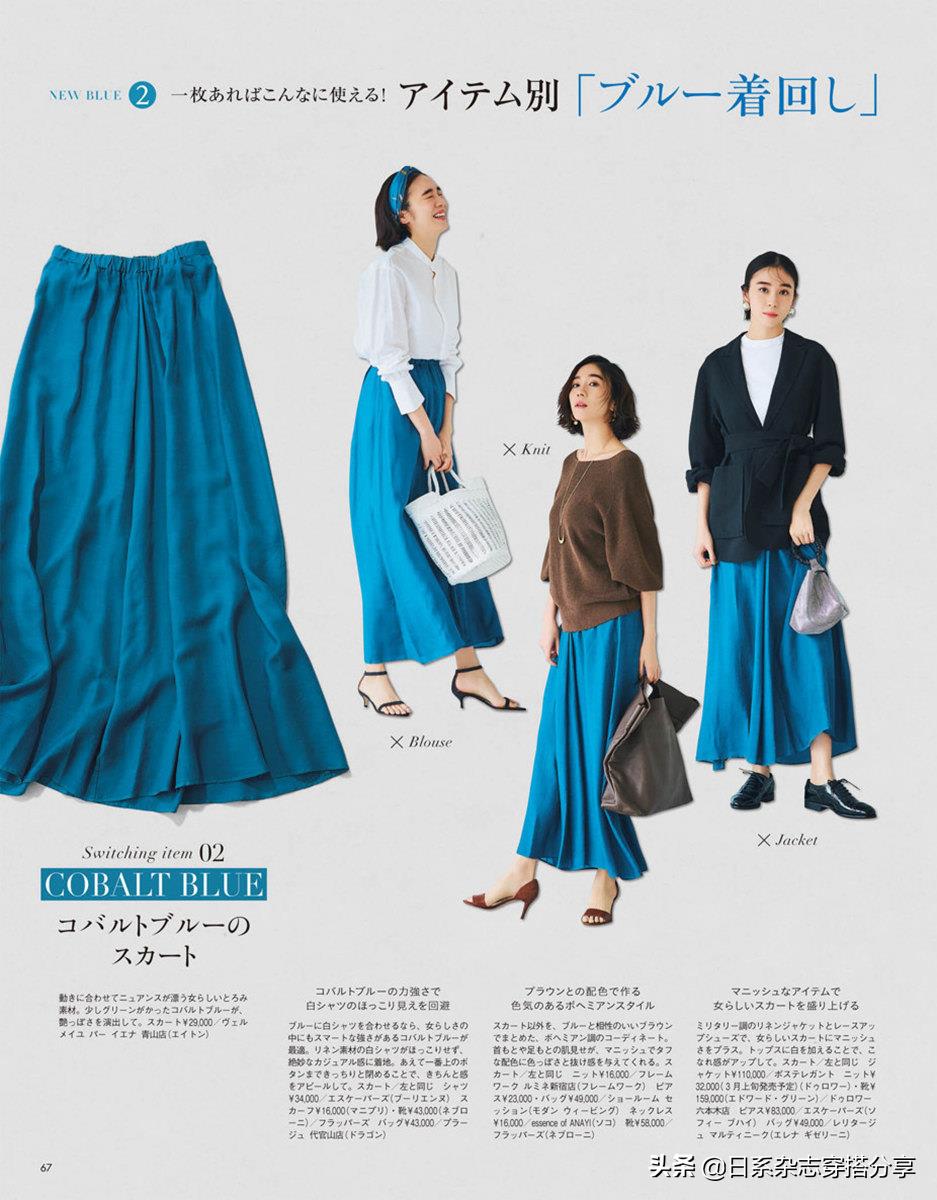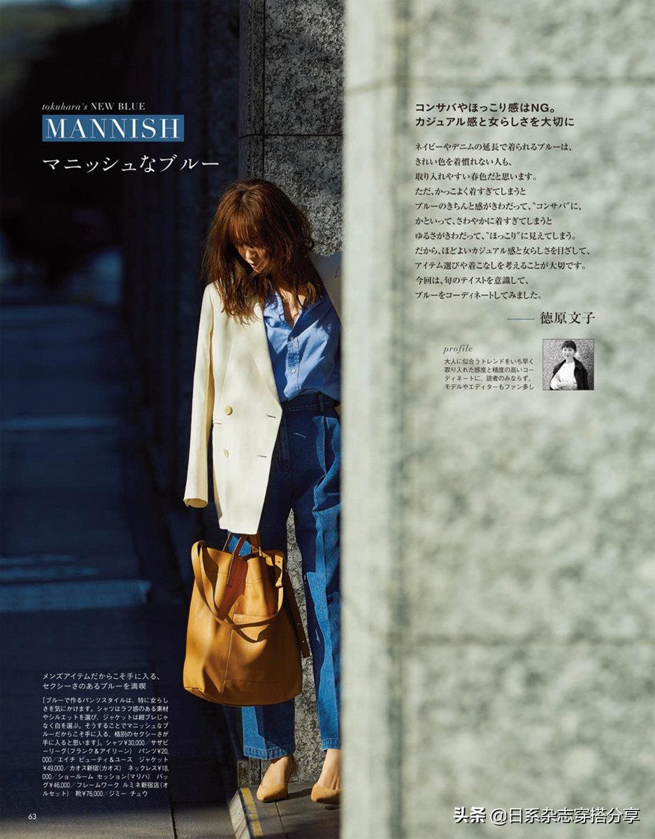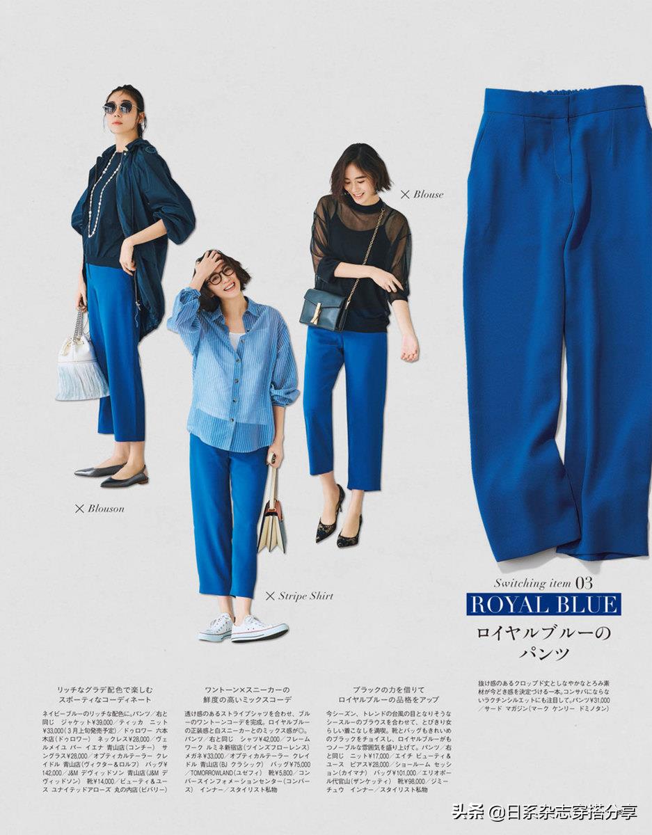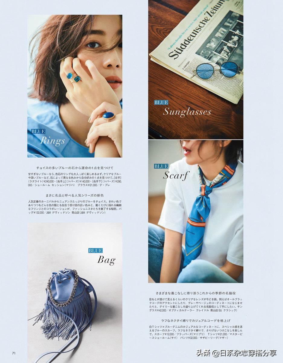 最近在杂志看到一组蓝色的衣服,被吸引住了,真的太美了。然鹅蓝色衣服我衣柜只有一件衬衫,平时也很少会考虑到蓝色系衣服,主要是觉得蓝色太亮,不好搭配衣服,看完这个杂志,观念被推翻了。蓝色还表示秀丽清新、宁静、忧郁、豁达、沉稳、清冷,也是可以给人带来信赖感的色彩,所以在搭配方面也可以选择,如果觉得大面积不好搭配,可以从小面积开始搭配,比如丝巾,耳环,鞋子.....
