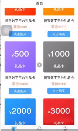 2.登录app后,点击首页可以看到很多的礼品卡,下面以500礼品卡举例来演