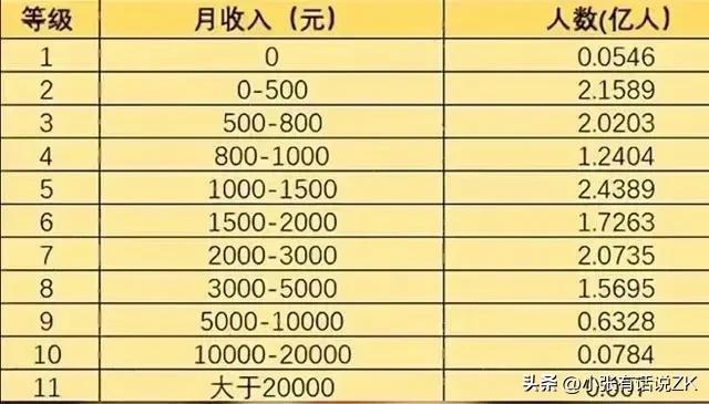 上周,某基金公司做了一项普查,他们把14亿国人人均月收入分为下面的11个等级,结果让人倒吸了一口凉气!