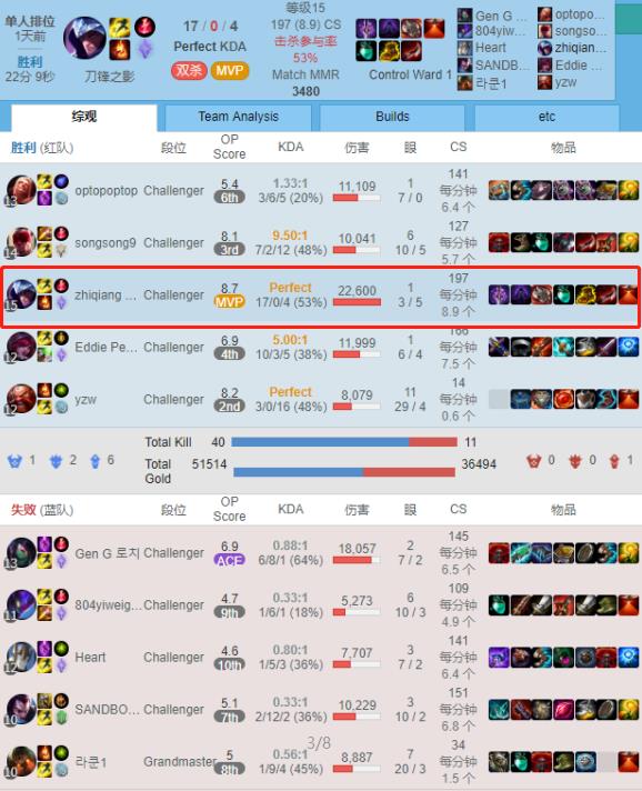 不得不说的是,至强的男刀正如“刀下生,刀下死”一样。只要至强男刀在手,他的胜率就奇高,而且在战绩还尤为亮眼,韩服王者700分的战绩,至强男刀17-0的数据,这谁顶得住呢?这也难怪Faker,Knight等人被单杀了。
