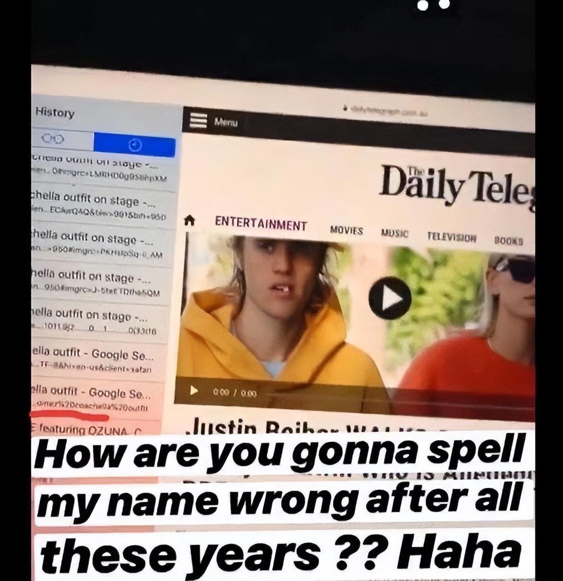著名的婚后和老婆一起搜前女友八次事件。比伯自己发的视频里,左边浏览器记录里写得清清楚楚狂搜赛琳娜的新舞台。