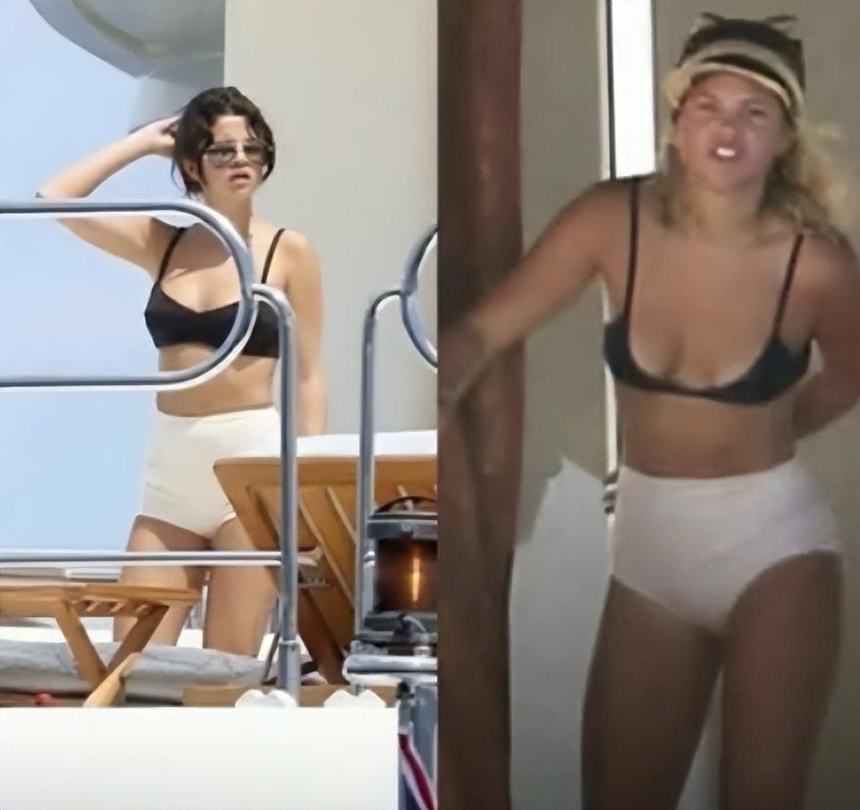 左赛琳娜,右Sofia(和比伯游艇出游,穿和赛琳娜一样的泳衣。当时外网都是这张图,确实截得挺恶意)