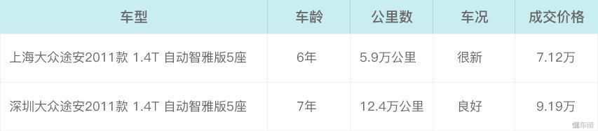 通过以上两辆车的对比,我们能看到,开了7年12.4万公里且车况良好的大众途安比开了6年5.9万公里且车况很新多卖了2.07万元。当然,这也与所在城市有一定关系。所以说,影响一辆二手车能卖多少钱的因素是综合的。
