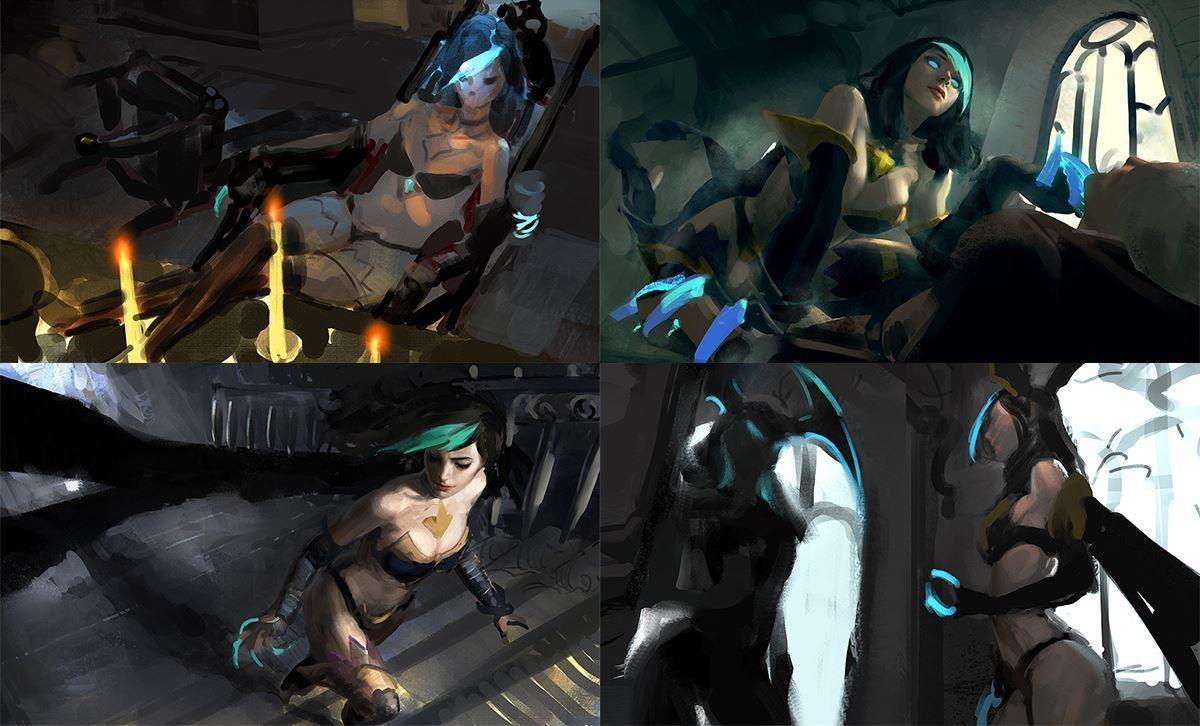 寡妇制造者伊芙琳皮肤”黑暗女王“&”假面女皇“原画创作过程