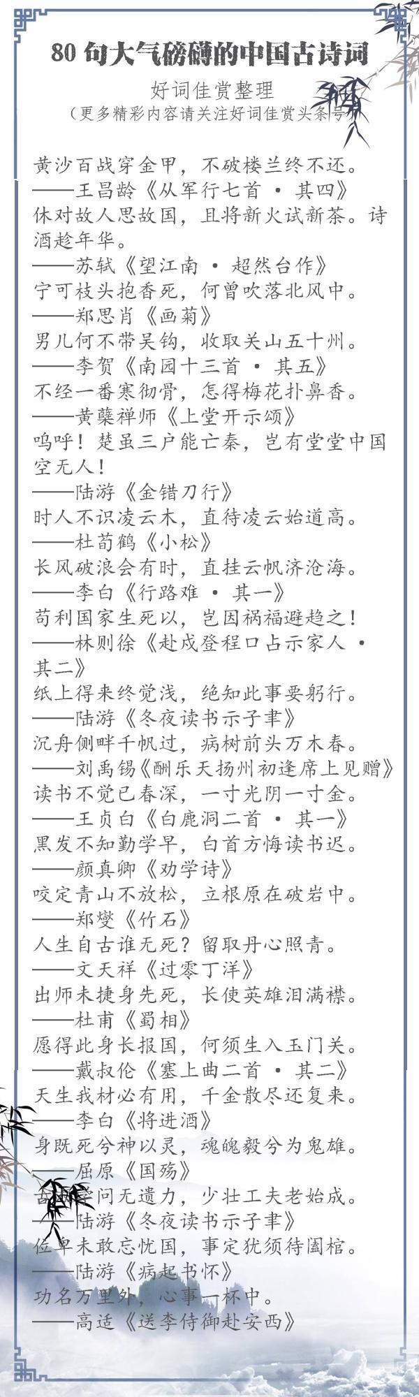 你喜欢这些句子吗?你还喜欢哪些大气的诗句呢?欢迎在评论区给大家推荐。