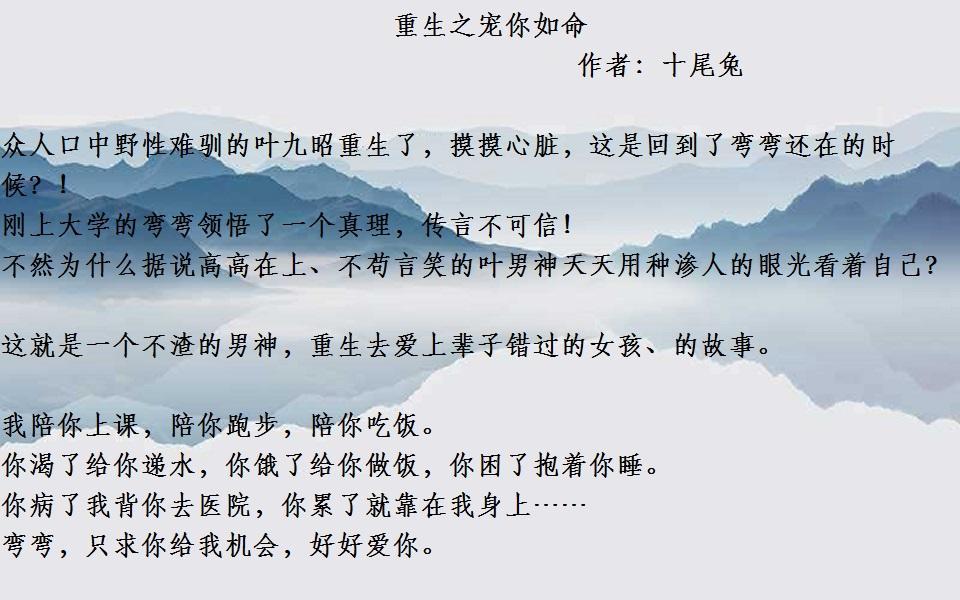大家好!今天小编为大家推荐几本男主重生文,前世的遗憾今生来弥补,甜宠。