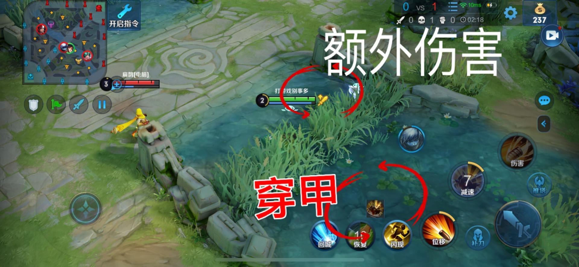 这两个伤害是不用的,穿甲效果是可以对任何敌人的,就是二技能命中敌人后再对另外的英雄打伤害都可以打出破甲伤害,而额外攻击只能针对命中二技能的敌人以及小兵;所以前期对线的时候可以利用二技能的这个额外伤害来清兵升级。