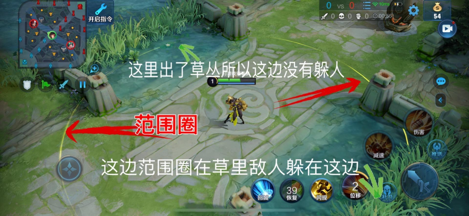 我们从上面了解到一技能是有一个敌人在附近就会有一个加速的效果,而我们在玩大小姐的时候,就可以利用一技能来探视野,看看草丛里到底有没有躲敌人,而敌人在离我们多远的时候会出现这个加速的技能效果!