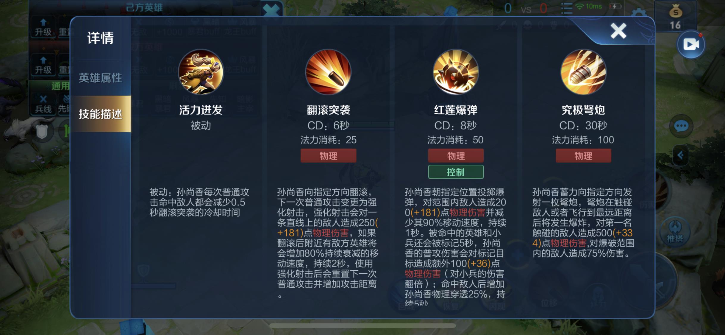 上面是孙尚香的基本技能说明,现在我们就根据技能说明来具体说说大小姐的技能细节到底是怎么去使用的!