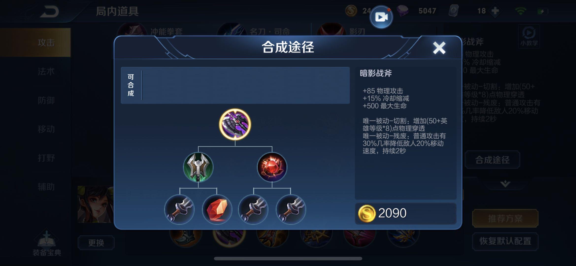暗隐战斧:15%的冷却。孙尚香必备的一件装备,因为前面也说了,她是靠技能打伤害,所以冷却CD是很重要的,外加战斧还有一个被动增加穿透以及减速敌人,是不是和孙尚香的二技能效果很像,所以搭配使用二技能的效果是不是更强?