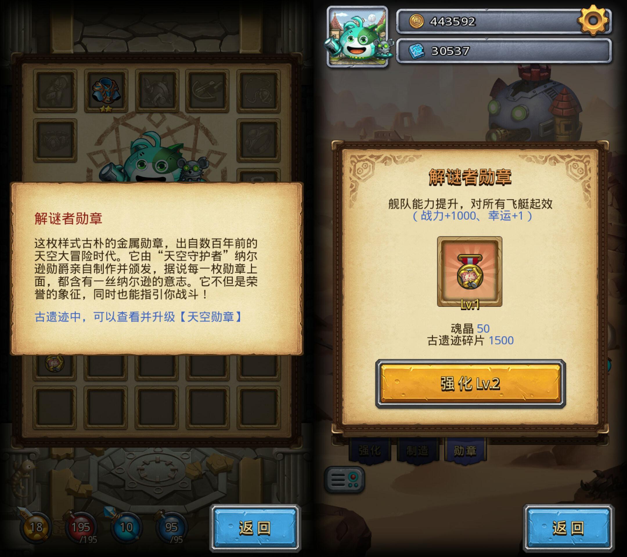 9.依次点击罗杰的储物箱(从左到右获得解谜者勋章、+5钻、+3000古遗迹碎片、太阳契约+2),通关