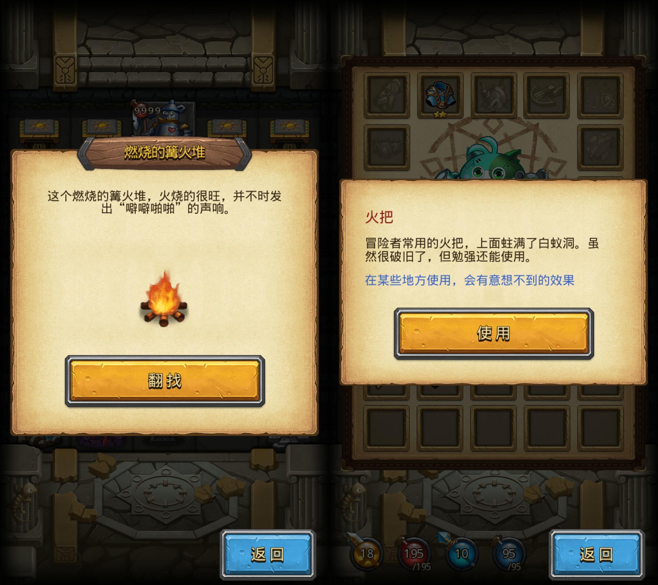 5.点击地窖使用【火把】会发现垃圾桶翻找获得【生锈的铁块】
