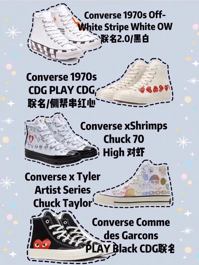 推推今天就给大家整理了一下匡威联名系列的鞋子/高帮款