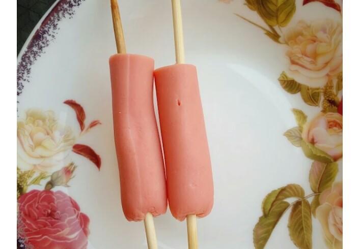 火腿肠(1-2根)、芝士(适量)、面粉(适量)、纯净水(适量)、面包糠(适量)、番茄酱/千岛酱(根据个人口味添加)、鸡蛋(1个也可以不加)