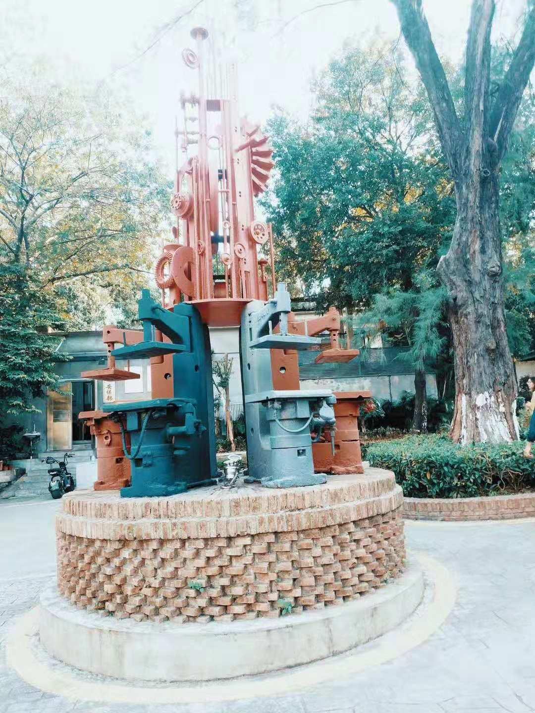 没错,这就是微信总部,扑鼻而来的是一股文创风。门口有两个打卡点,一个是微信气泡狗,一个是微邮箱,两岸记者们轮流拍照留影。不远处还有一个类似于工厂烟囱的东东。据微信工作人员介绍,整个园区以前是家纺织厂,烟囱就是当年留下的。后来厂房经过改造,成为文创园区,名字就叫TIT创意园。